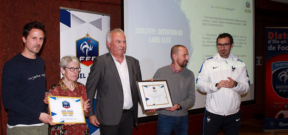 Gaetan Texier (Conseiller Technique Sectoriel) et Philippe Le Yondre (Président) ont remis le Label Jeunes « Elite » devant plus de 70 personnes, à la Maison des Associations. Source : District 35
